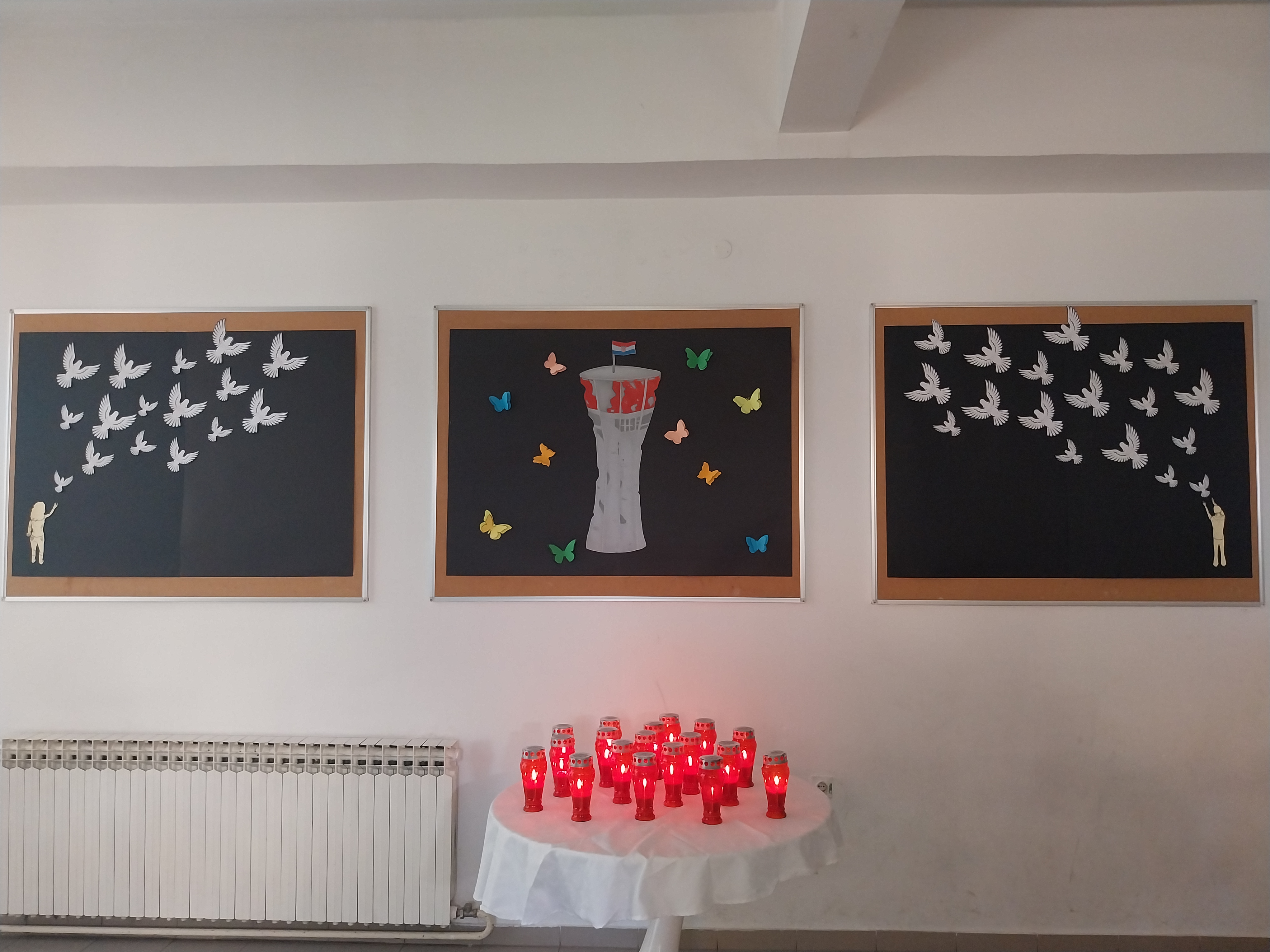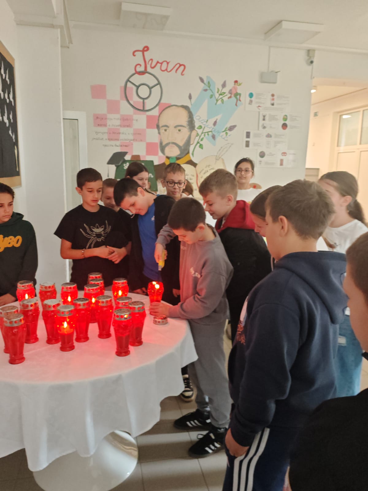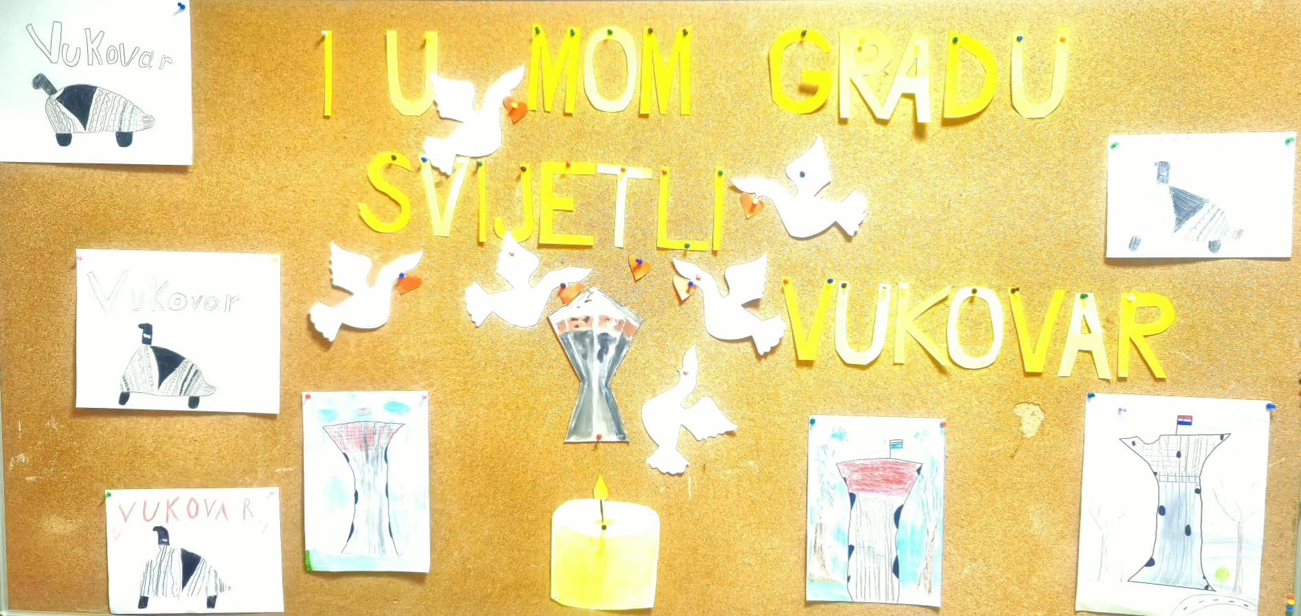 I ove godine u našoj školi obilježen je Dan sjećanja na žrtvu Vukovara i Škabrnje. Ovogodišnji program posvetili smo djeci koja su stradala u Vukovaru i njegovoj okolici za vrijeme Domovinskog rata. Pjesmom „Zemlja dide mog“ u izvedbi Anđeline Petričević (8.b) počeo je program. Uslijedio je recital „Rat žrtve ne bira“ u izvedbi učenika petog i šestog razreda: Maša Maleš (5.a), Lucija Vučić (5.a), Lana Jelović (6.b), Mario Čačija (6.b), Ivan Bilobrk (6.b), Lana Anđela Jagnjić (6.b) i Ani Petričević (6.b). Prikazana su dva video zapisa o stradanjima djece, ali i roditelja. Čitanjem imena prisjetili smo se trideset i četvero djece čiji su životi prerano ugašeni. Oni nisu nikad dobili mogućnost raširiti svoja krila i odrasti pa su svi učenici zajedno izveli pjesmu „Krila leptira“. Učenici i djelatnici sudjelovali su u humanitarnoj akciji sinjske udruge UTIS. Prikupljena sredstva od prodaje lampiona namijenjena su vukovarskoj udruzi „Vukovarski leptirići“. Program u centralnoj školi završen je paljenjem 34 svijeće u školskom predvorju. Ovaj tužni događaj obilježen je i u područnoj školi Gljev pod vodstvom učiteljica Tatjane Šimić i Ines Lovrić. Učitelji Grozdana Filipović Grčić, Dino Fabjančić, Sandra Matko, Žana Sunara, Stipe Radić, Martina Kečkemet Radišić i Tina Budimir osmislili su i organizirali obilježavanje programa u centralnoj školi.