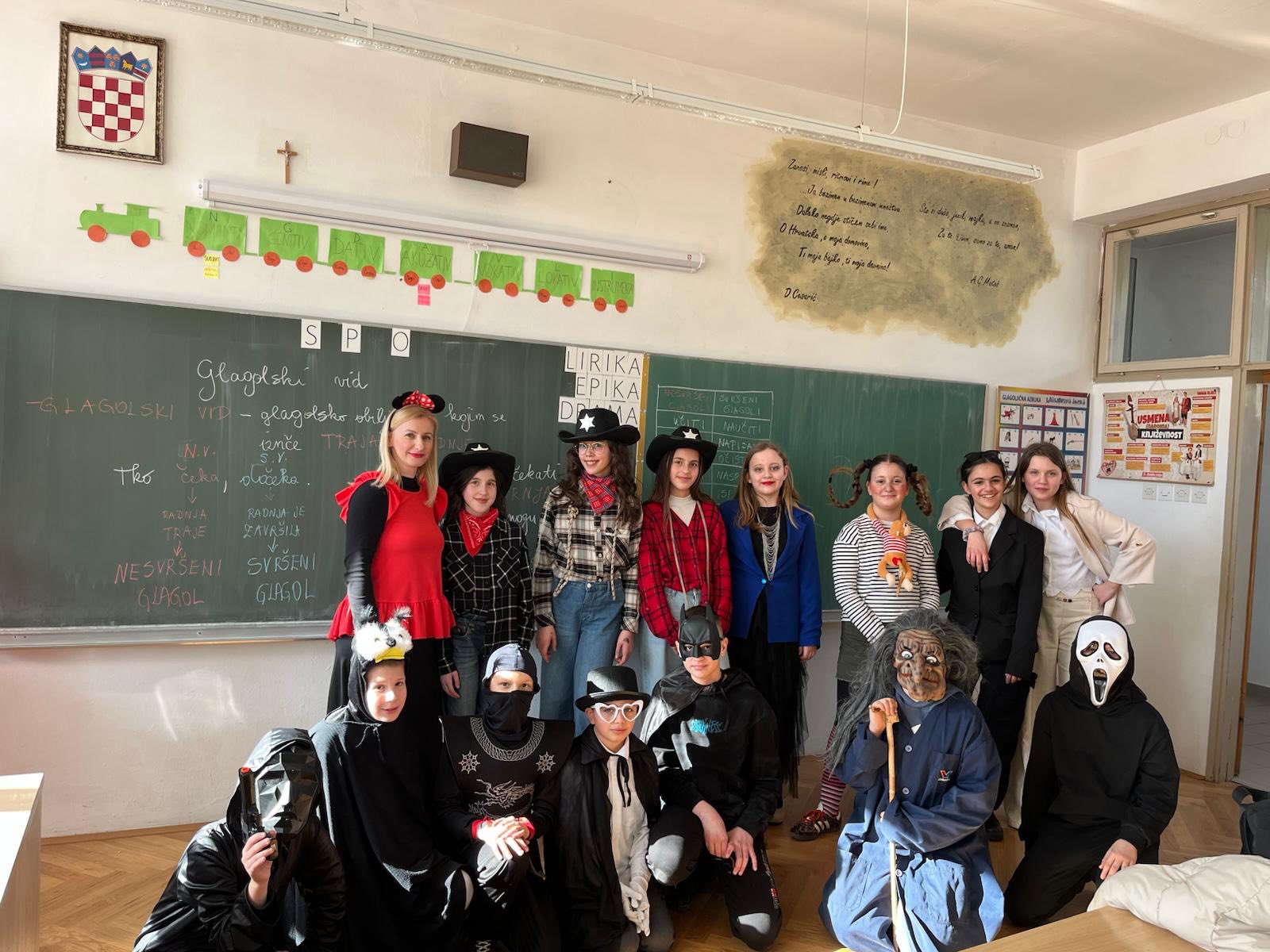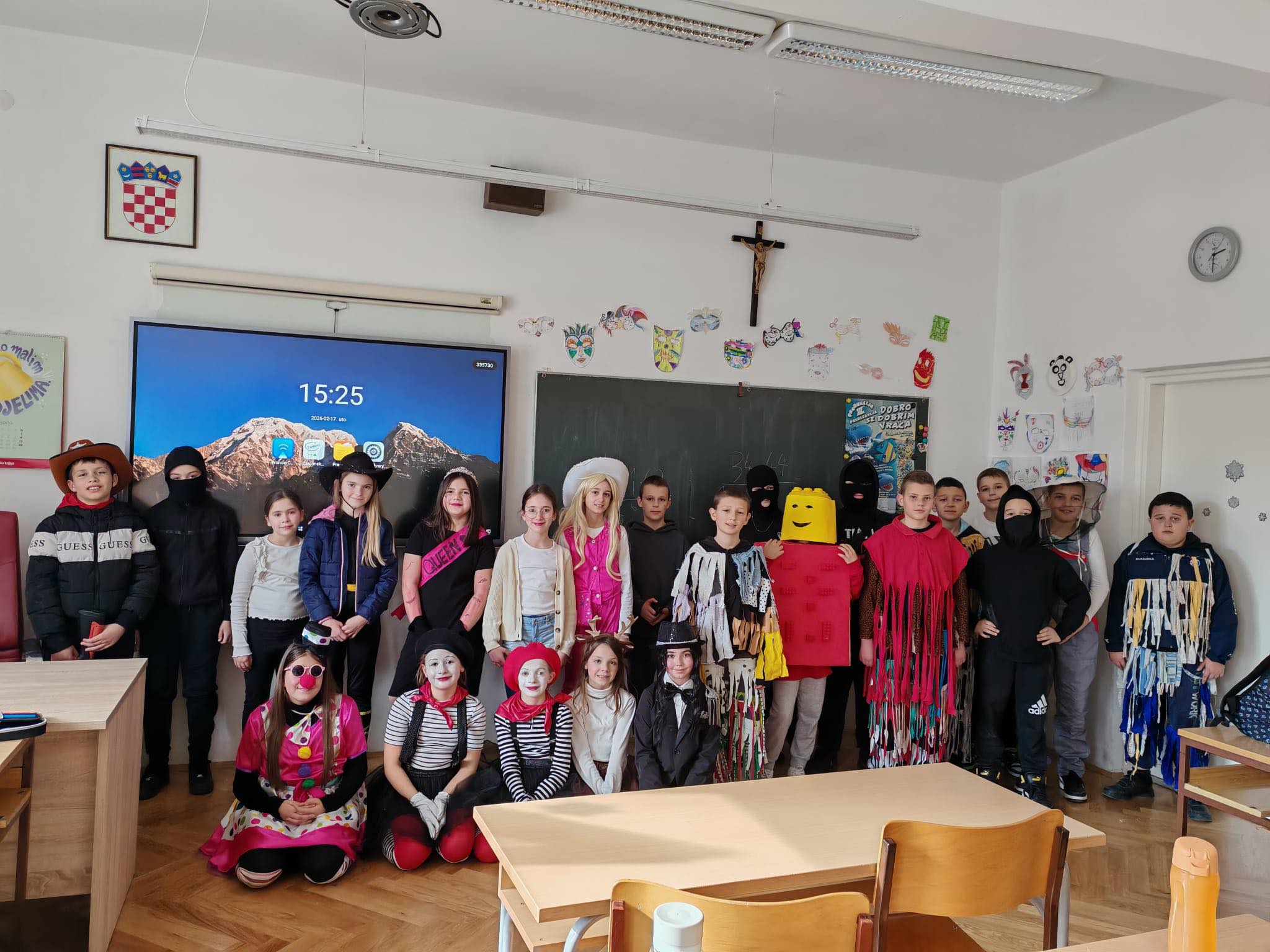 U našoj školi jučer je održan veseli i šareni maskenbal. Školski hodnici i dvorana ispunili su se maštovitim maskama, smijehom i glazbom. Program je započeo predstavljanjem pojedinačnih maski. Učenici su pokazali svoju maštovitost, kreativnost i hrabrost nastupajući pred publikom. Svaki nastup bio je poseban na svoj način, a učenici su se izražavali kroz ples, glumu i razne koreografije uz glazbenu pratnju. Njihova originalnost i trud stvorili su veselu i razigranu atmosferu te izmamili brojne osmijehe.